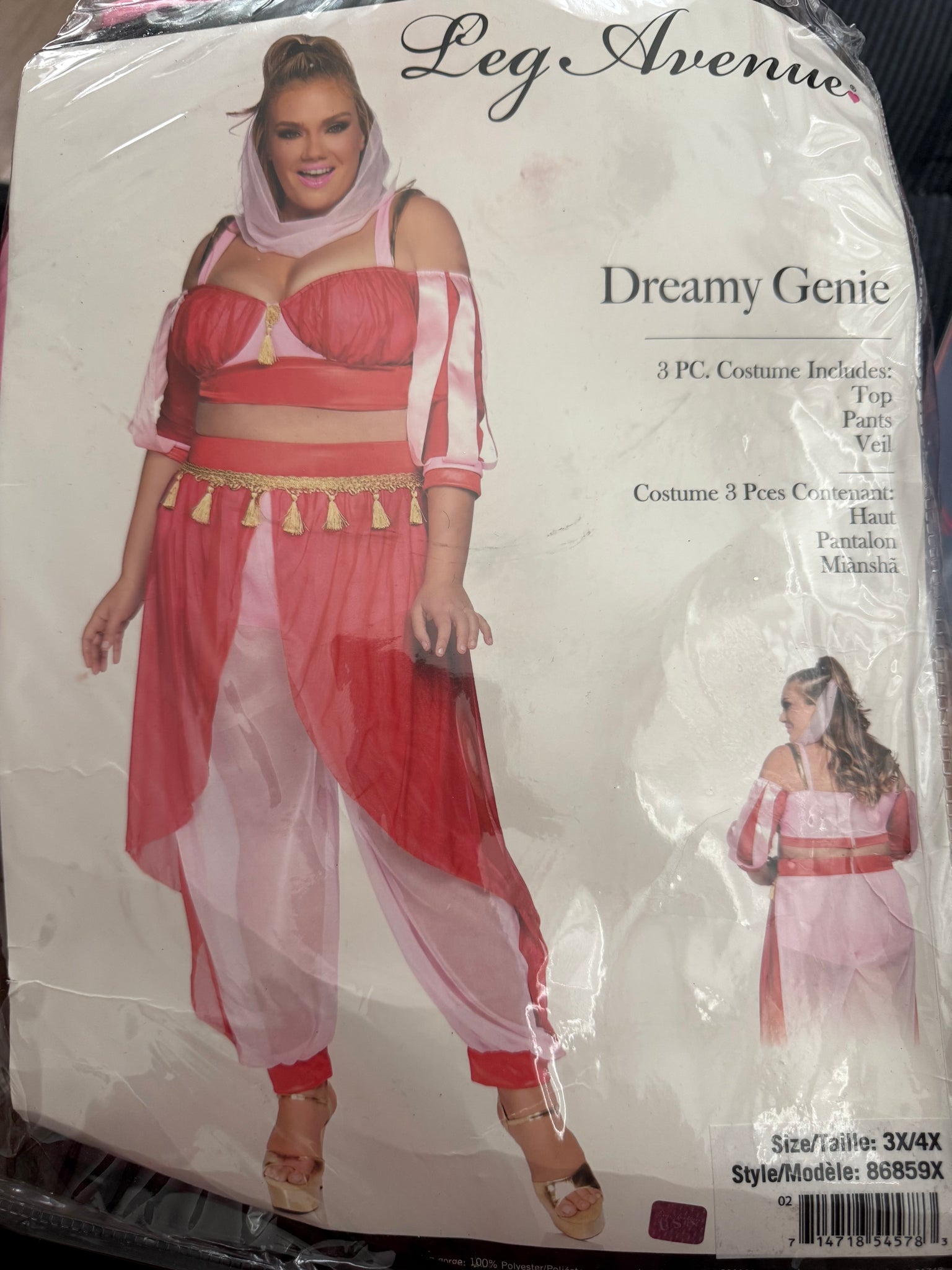 3 PC Dreamy Genie, includes bra top, layered harem pants with built in panty, and matching veil.